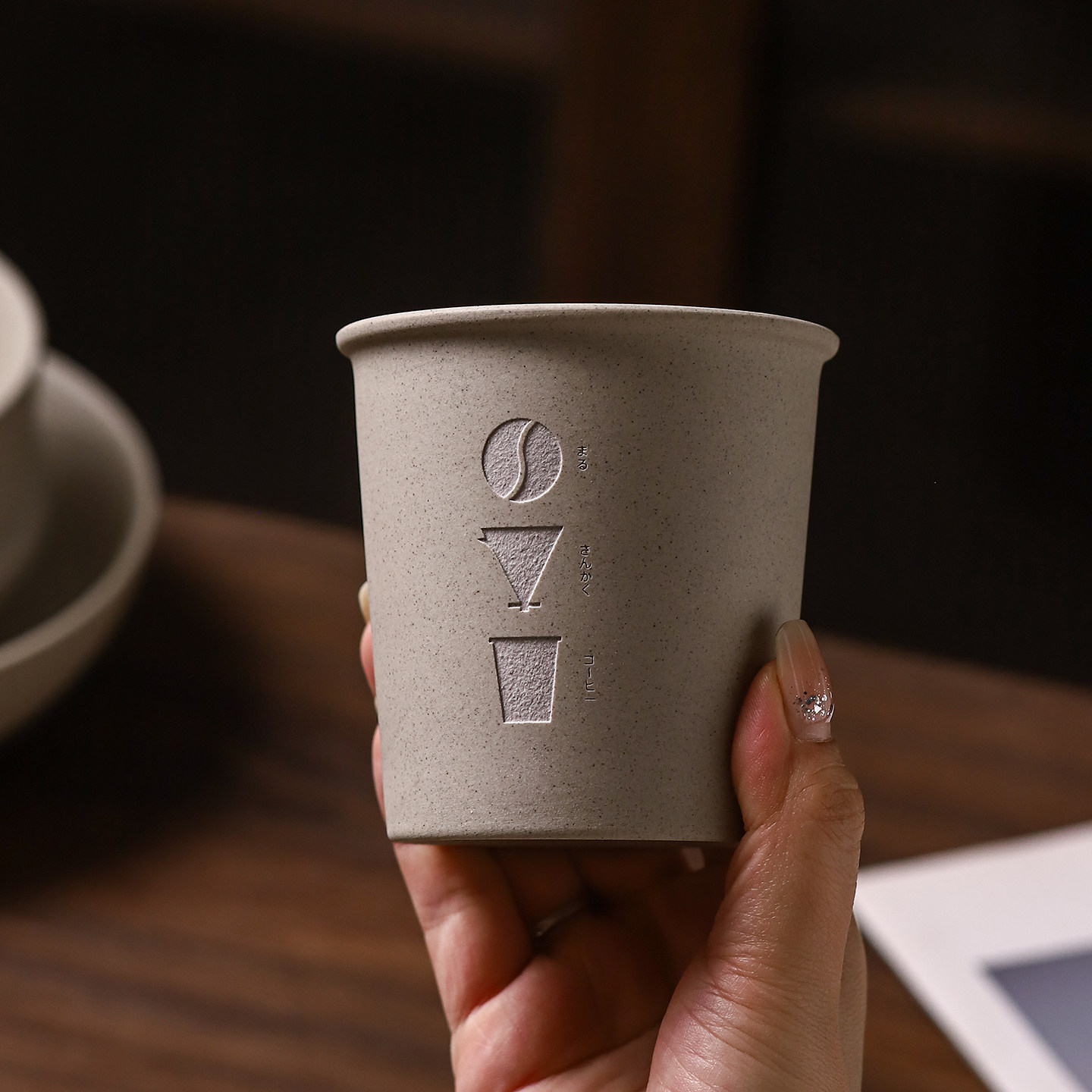 复古陶瓷杯日式粗陶美式咖啡杯仿纸杯杯子拿铁拉花杯水杯牛奶杯