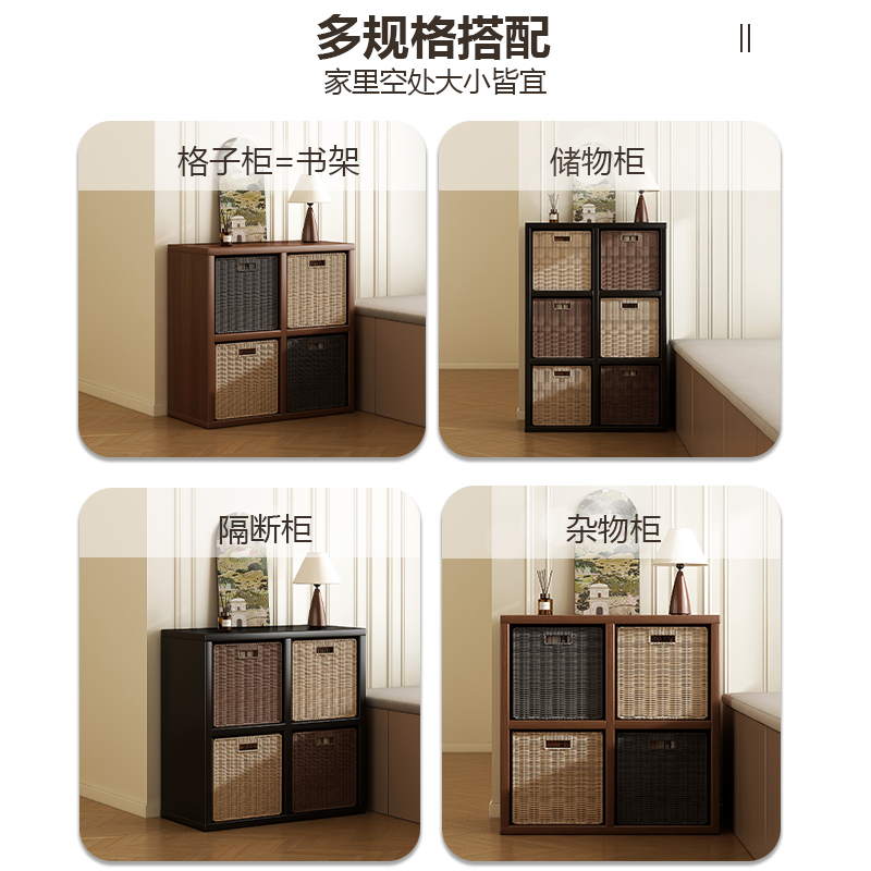 格子柜实木书柜储物柜一体靠墙书架落地置物架家用收纳柜陈列柜子