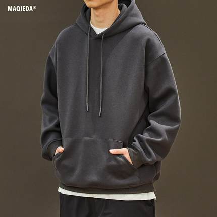 马切达秋季情侣纯色百搭连帽卫衣男士基础款宽松外套潮流套头帽衫