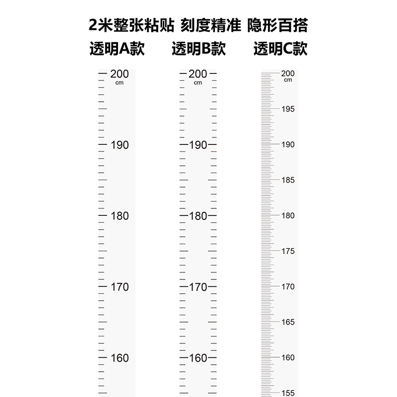 儿童量身高贴纸家用透明身高测量墙贴2米一整张防水可移除不伤墙
