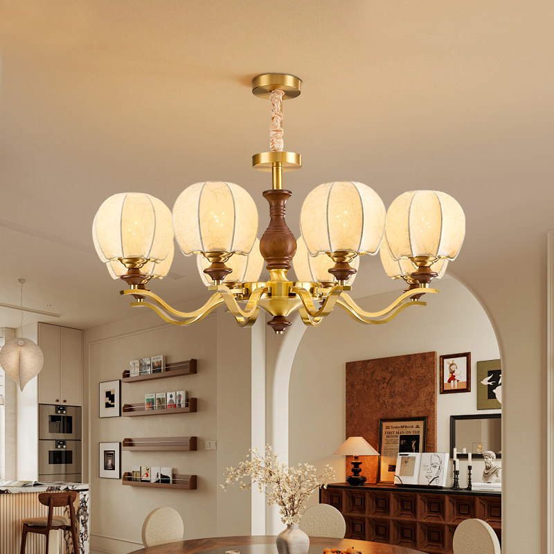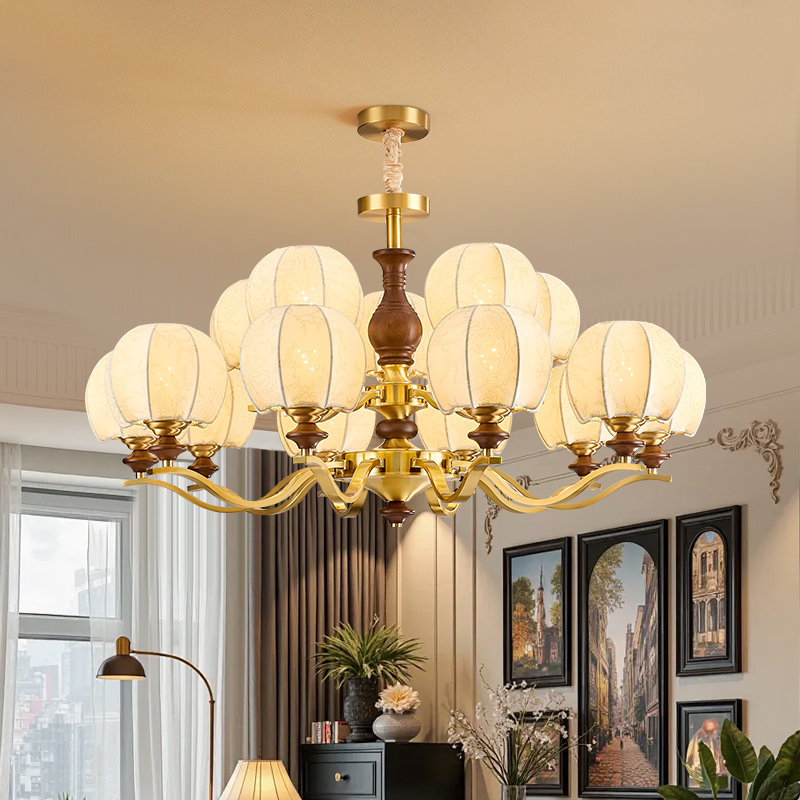 中古吊灯全铜客厅主灯实木布罩美式复古法式轻奢餐厅主灯卧室书房