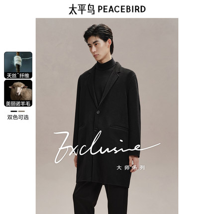【兰精天丝】太平鸟男装羊毛大衣中长款24冬新款双面呢子外套
