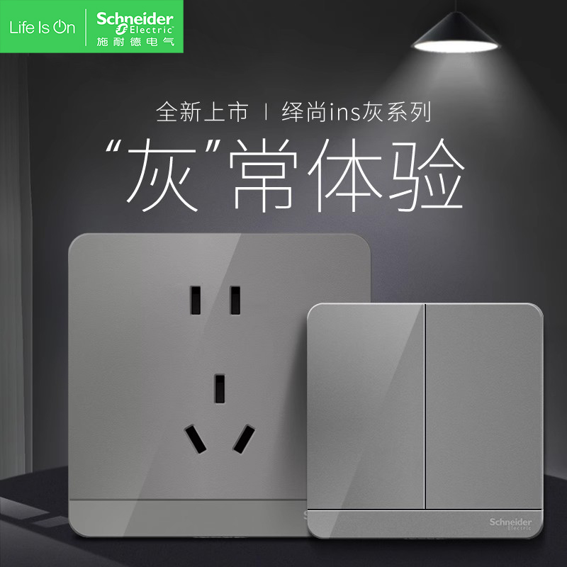 施耐德开关插座官方旗舰店官网绎尚荧光灰面板多孔五孔带开关面板