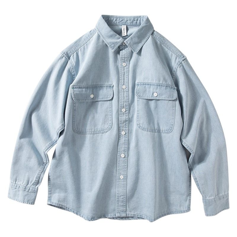 牛仔衬衫男长袖春秋款纯棉宽松美式休闲衬衣青春复古简约外套男潮