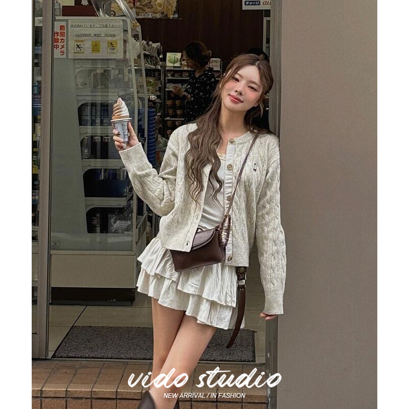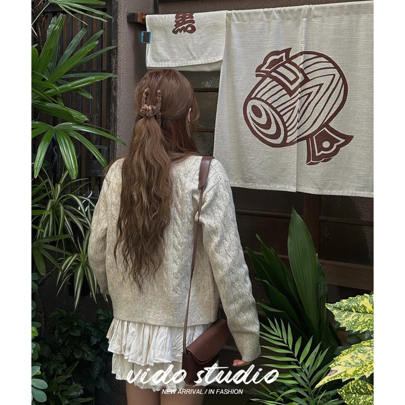 韩国博主同款复古麻花针织开衫女25秋冬减龄百搭韩系短款毛衣外套