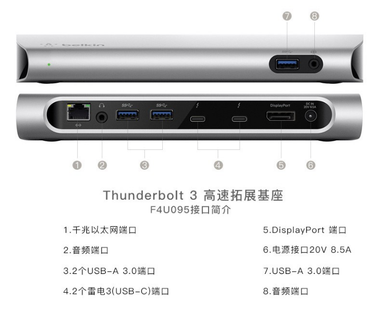 贝尔金雷电3拓展坞底座F4U095