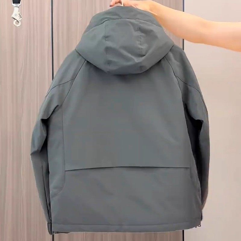 秋冬二棉外套男士连帽工装冲锋衣帅气青年休闲棉服百搭夹棉夹克男