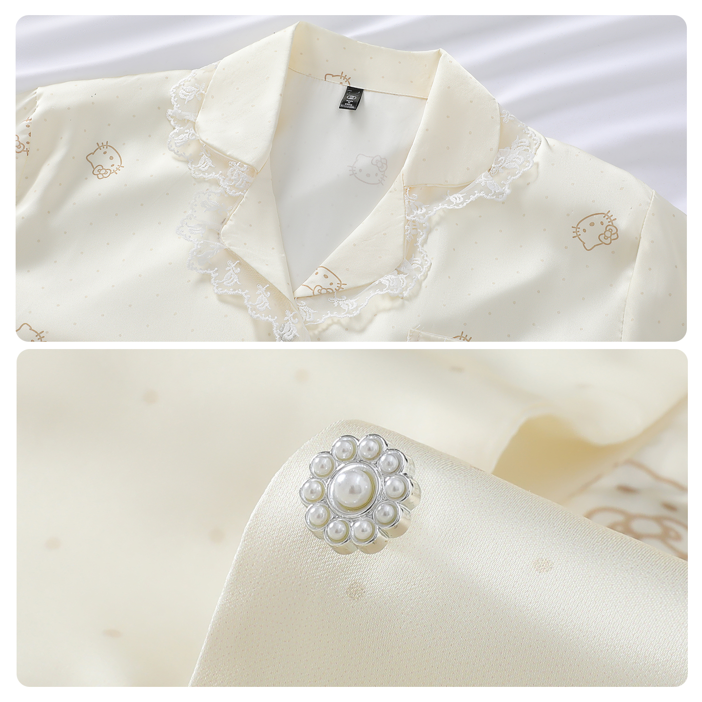 奶乎乎睡衣女款春秋季2025新款长袖冰丝绸波点凯蒂猫可外穿家居服