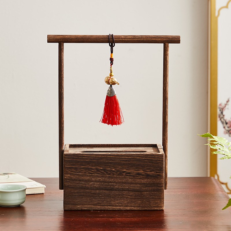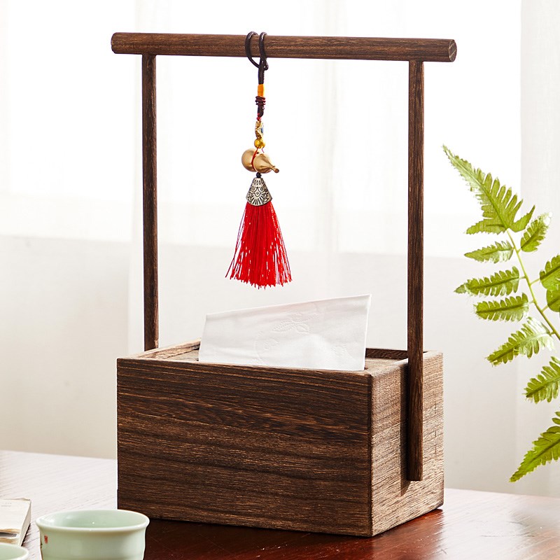 实木茶桌摆件创意抽纸盒手提式纸巾盒轻奢中式复古茶室餐巾纸抽盒