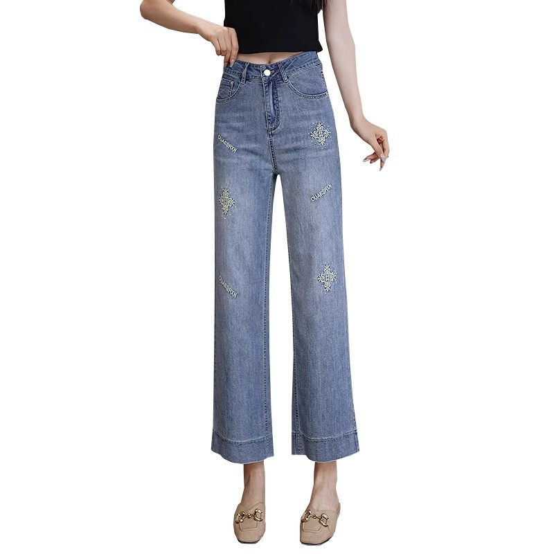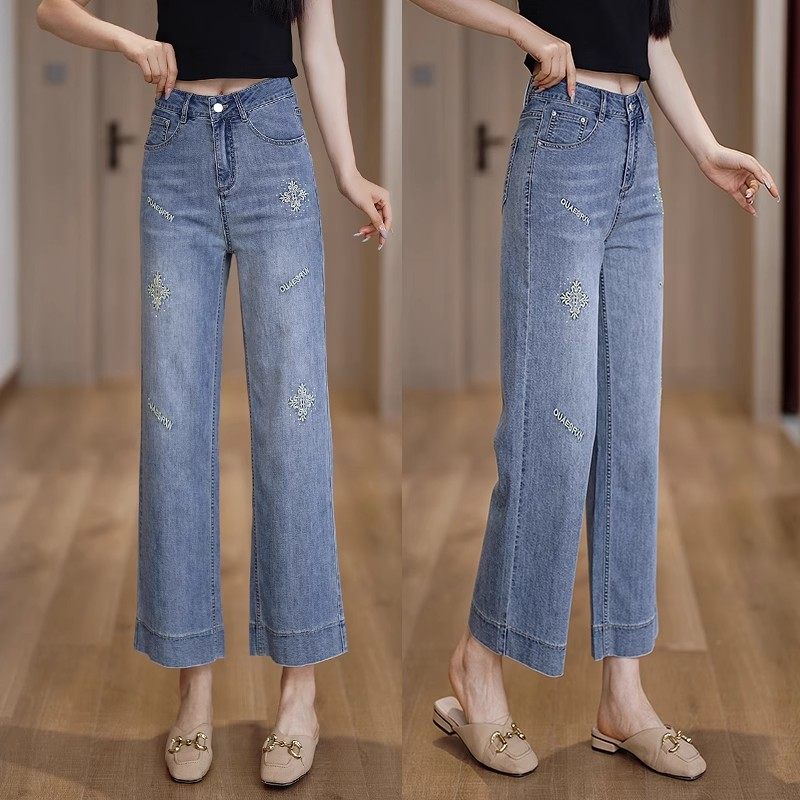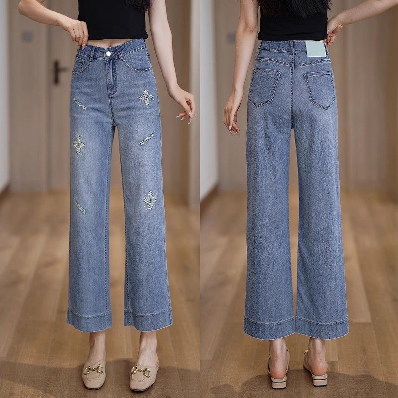 八分阔腿牛仔裤女薄款2025年夏季新款高腰显瘦小个子休闲直筒裤子