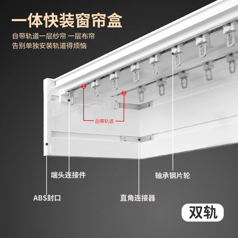 双层连身挡板轴承轮轨道一体窗帘盒铝合金加厚成品窗帘盒挡板快装