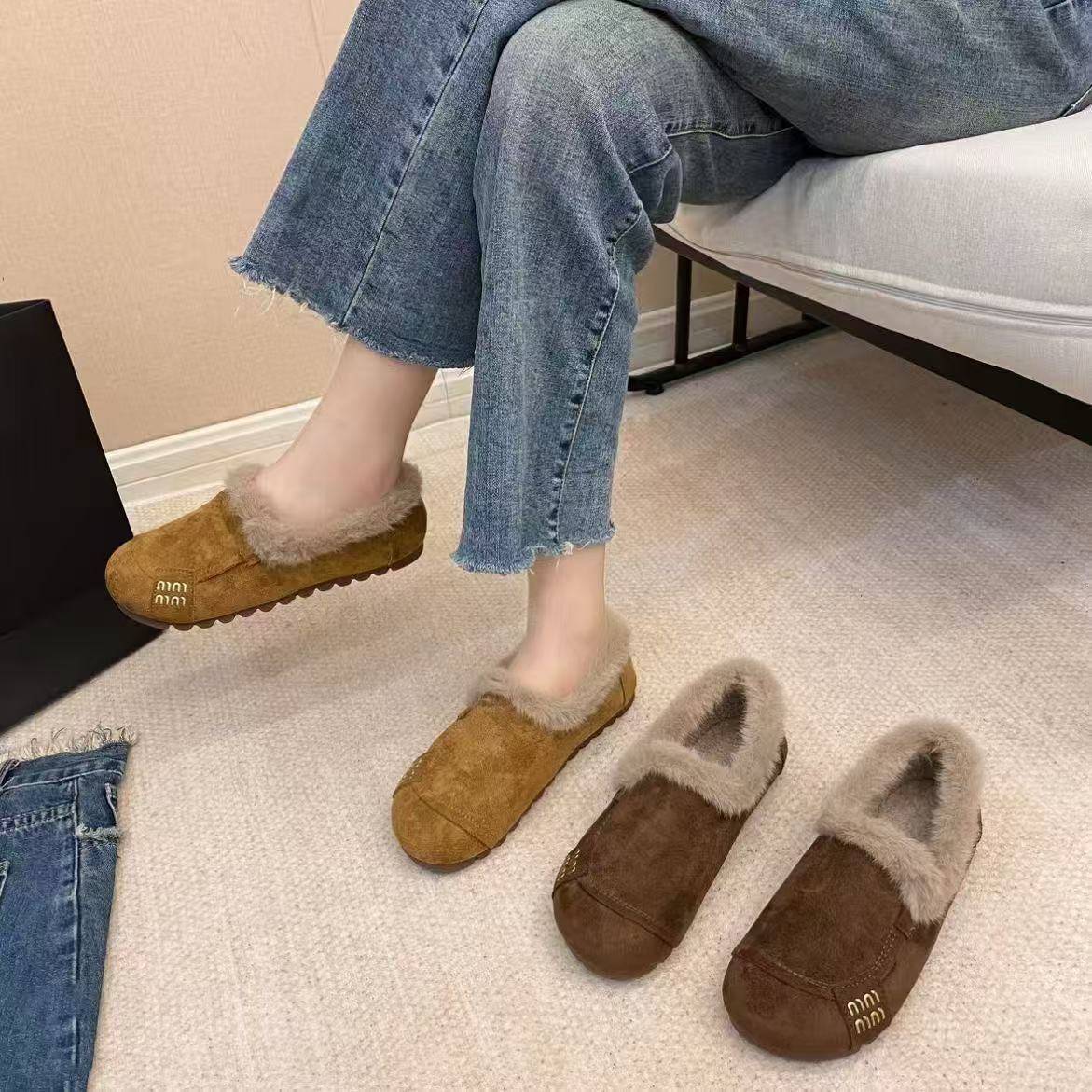 35-43 大码女鞋41宽脚肥脚一脚蹬加绒豆豆鞋加厚棉鞋保暖勃肯鞋42
