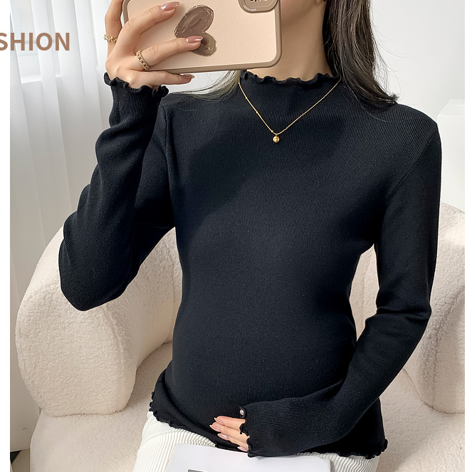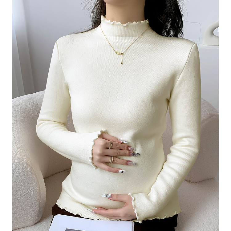 孕妇打底衫中长款杏色中高领针织打底内搭保暖上衣2025新款秋冬女
