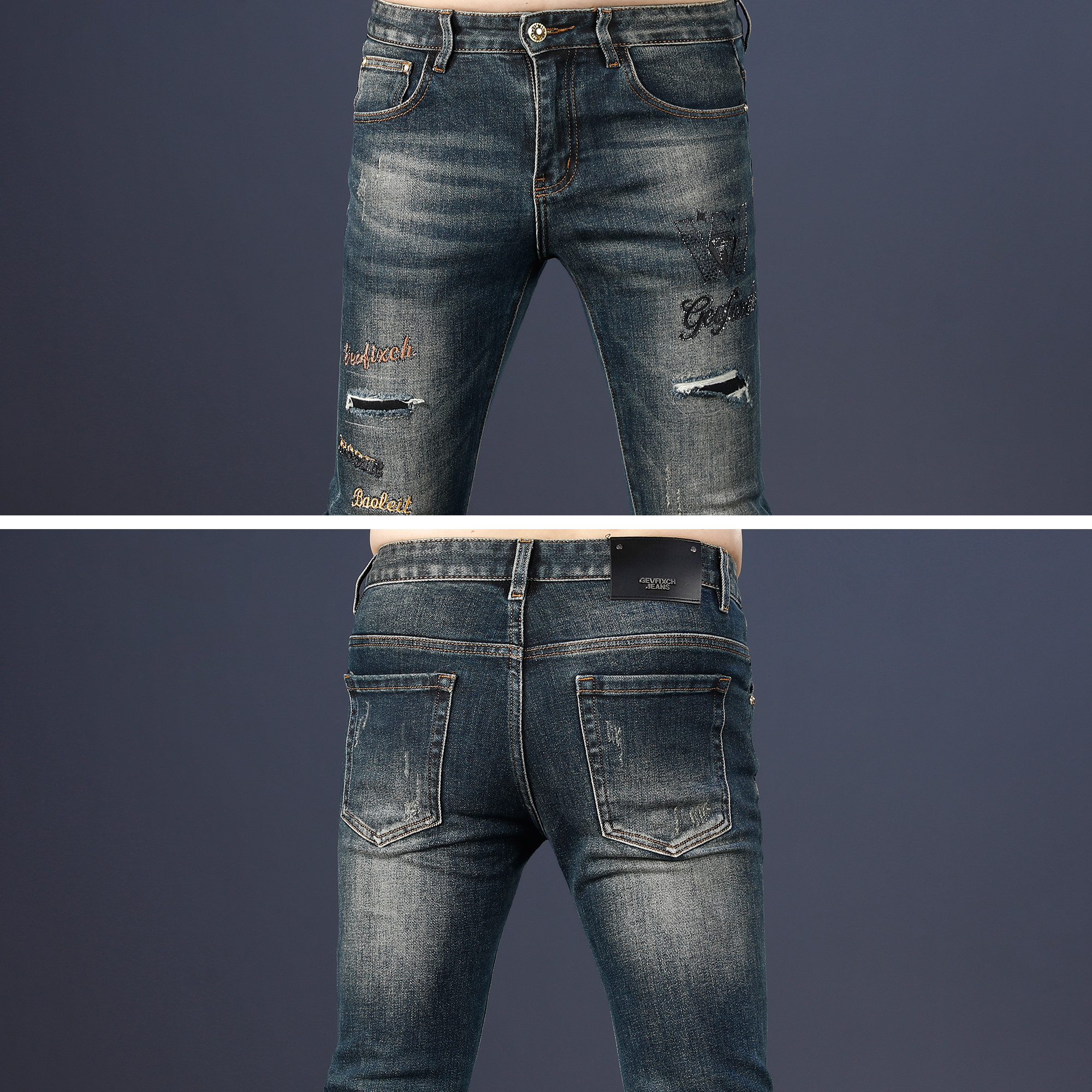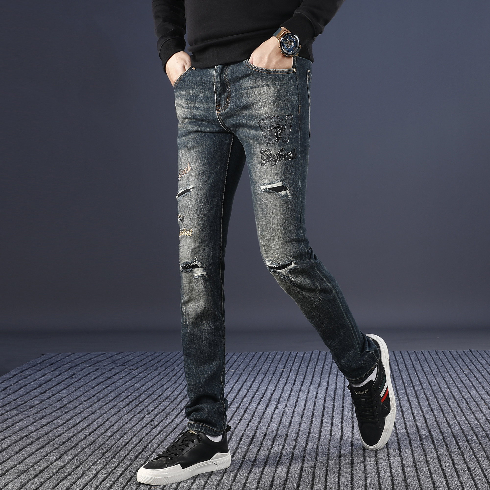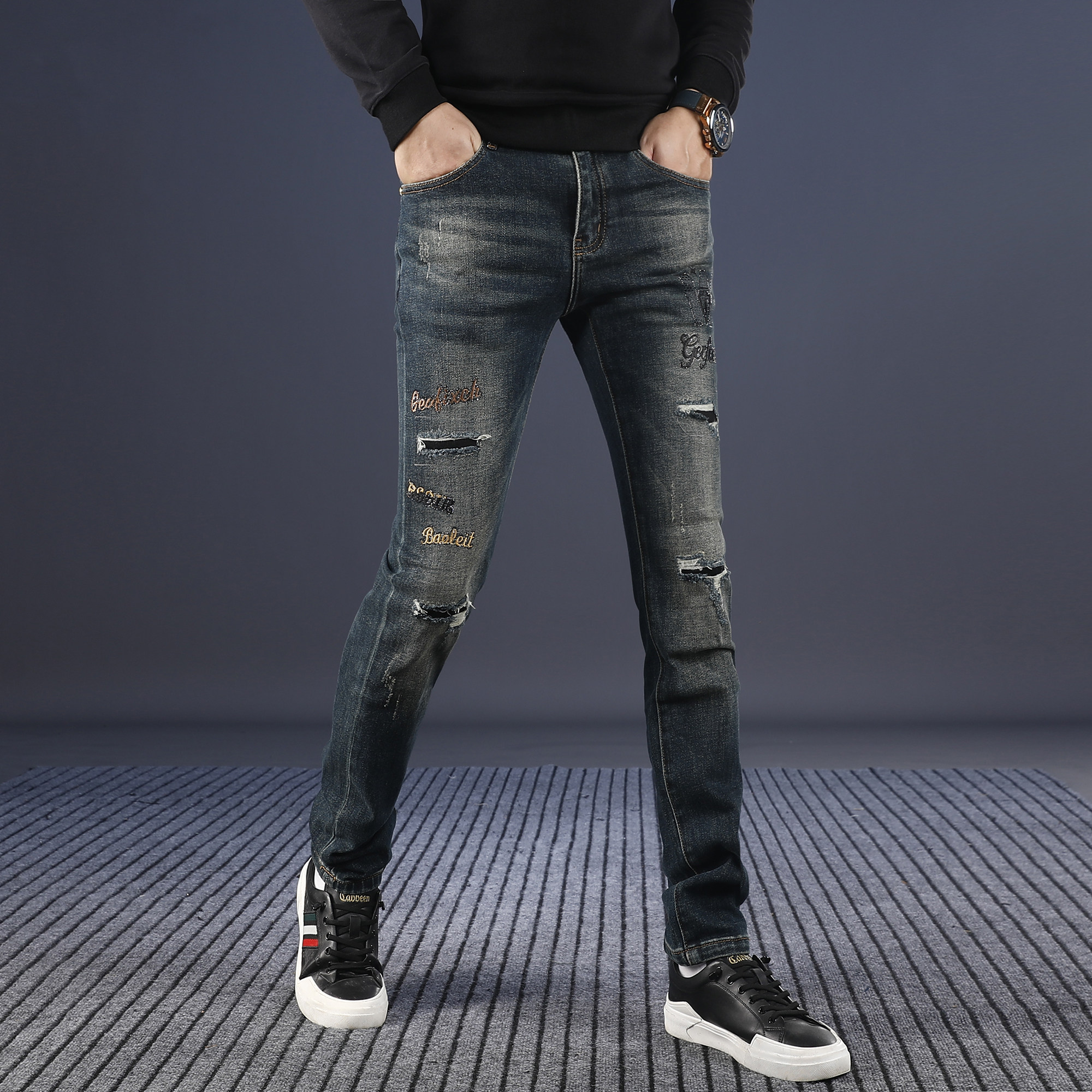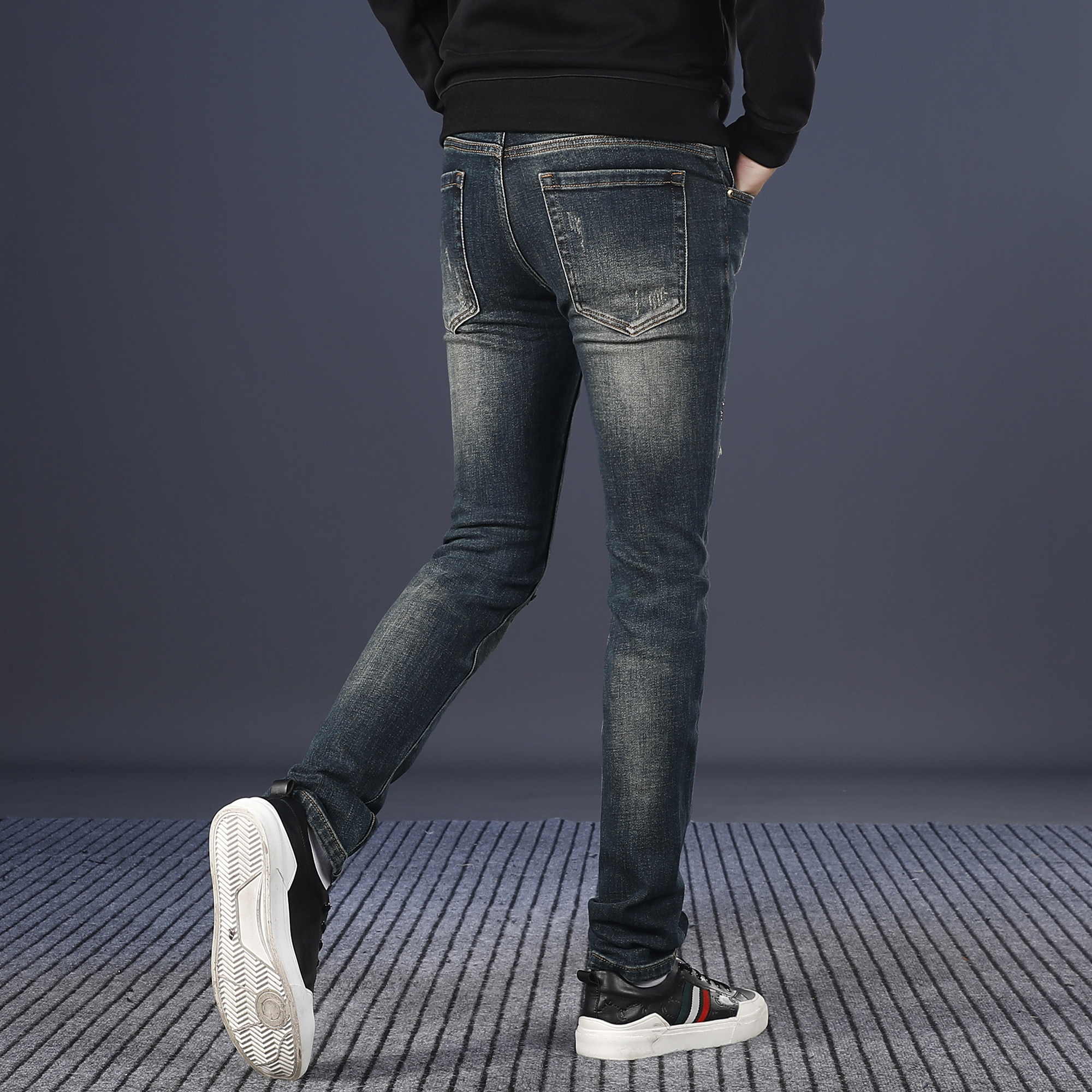 欧货潮牌复古破洞牛仔裤男款修身小脚2025新款秋冬季潮流男士裤子