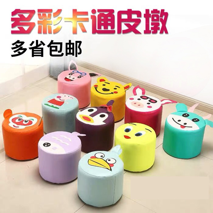 卡通儿童小皮墩换鞋凳实木创意小凳子沙发凳圆凳子矮凳脚凳皮凳子