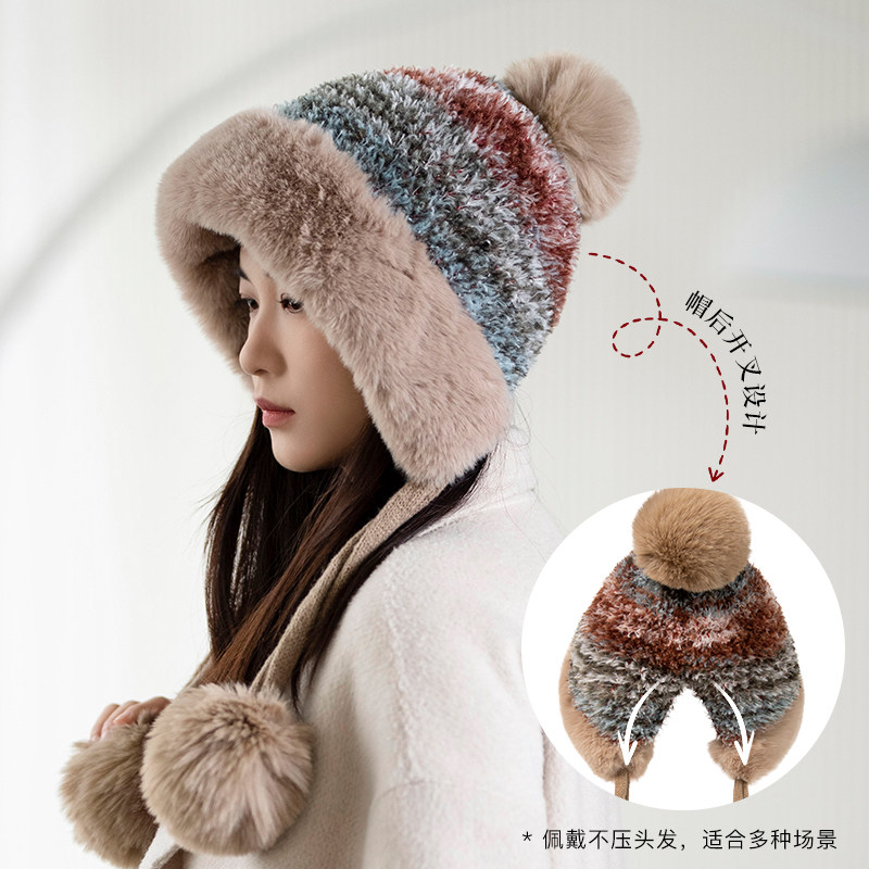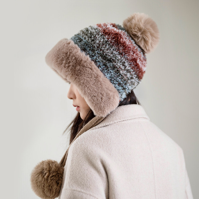 siggi 帽子女冬季护耳保暖针织毛线帽加绒加厚防寒东北旅游护脸帽