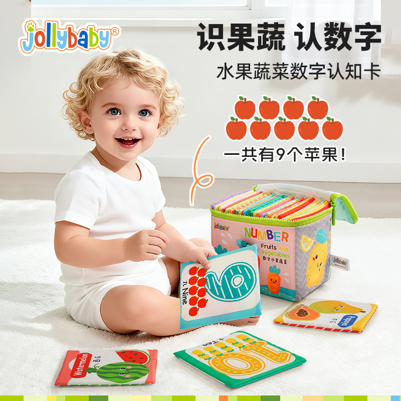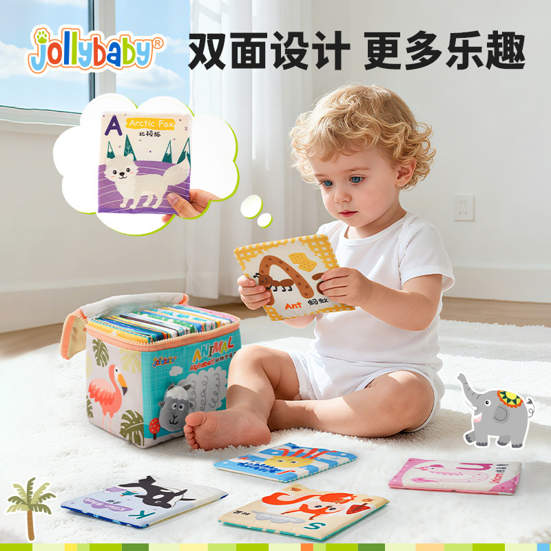 jollybaby儿童布书认知卡追视彩色看图识字宝宝早教婴儿闪卡玩具