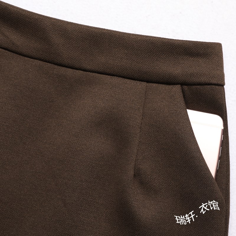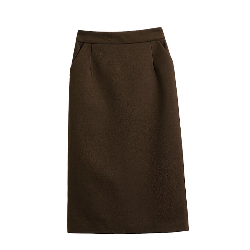 中长款职业毛呢裙咖色半身裙女冬季高腰一步裙开叉包臀裙长裙包裙