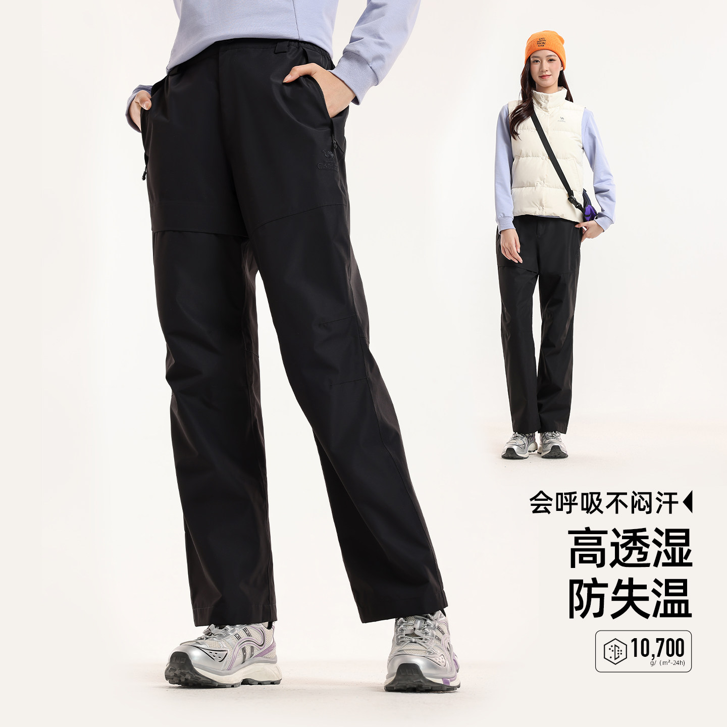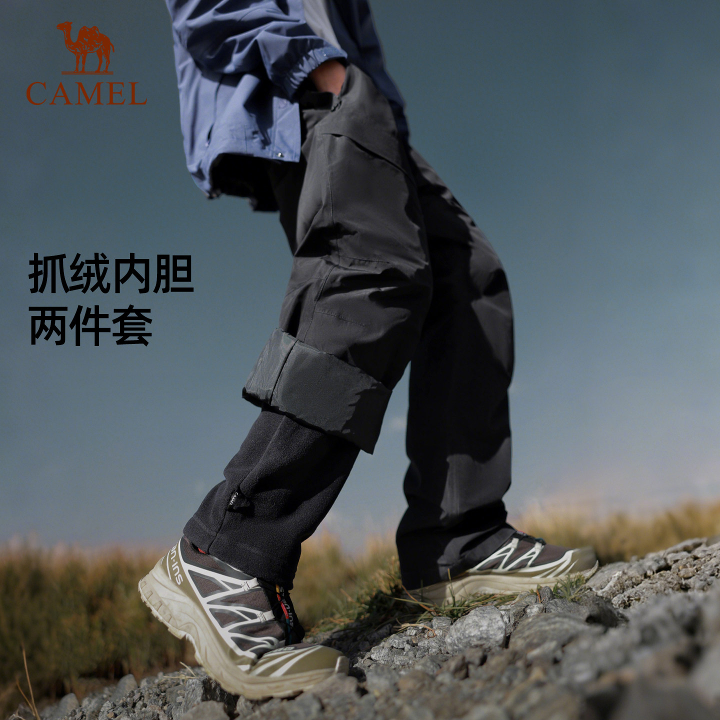 骆驼户外冲锋裤女三合一抓绒内胆2025秋冬防水防风雪徒步登山裤男
