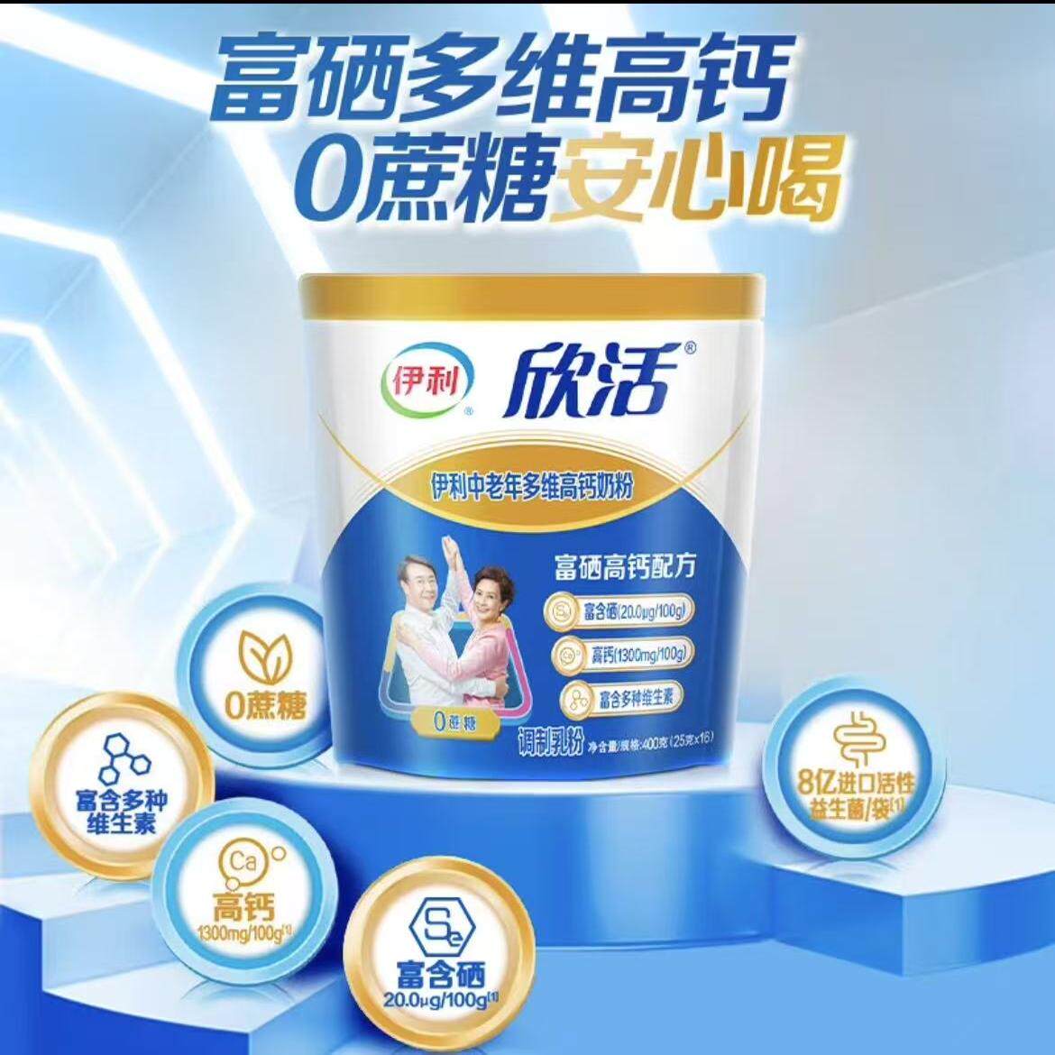 伊利欣活中老年多维高钙400克/袋 富硒 无蔗糖 高钙配方牛奶粉