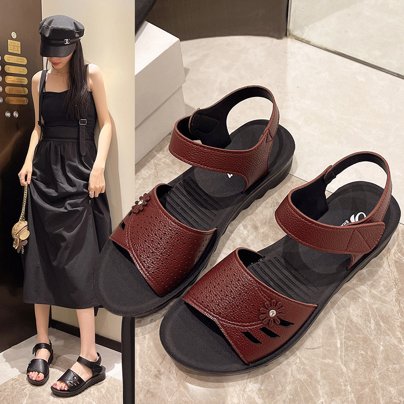 妈妈凉鞋女软底夏季中年女士凉鞋平底防滑大码中老年女鞋舒适女鞋