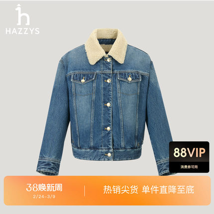 【商场同款】Hazzys哈吉斯秋季女时尚牛仔外套休闲夹克潮
