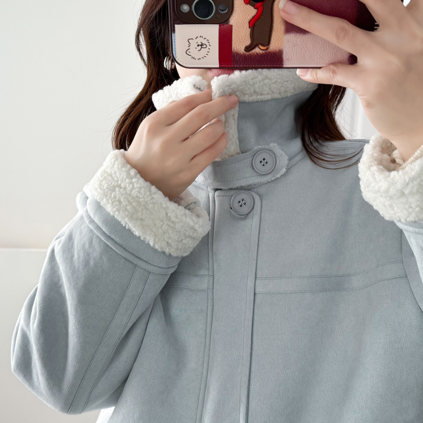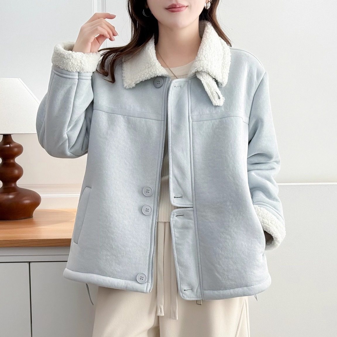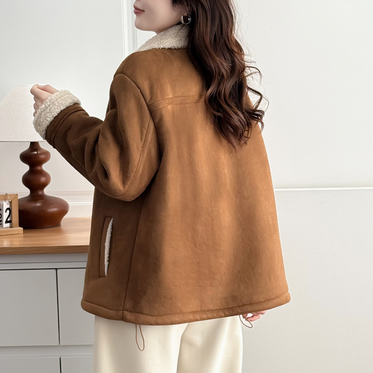加绒加厚外套女大码秋冬2025新款胖mm时尚下摆抽绳宽松麂皮绒上衣