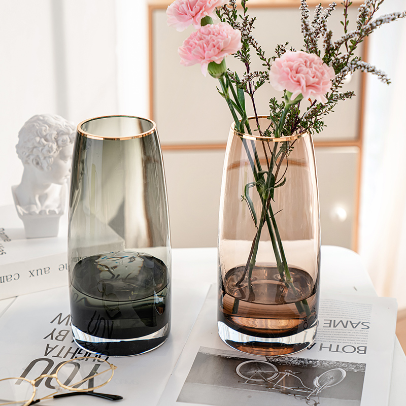 欧式简约创意g网红花瓶玻璃插花装饰摆件水养鲜花干花花器轻奢花