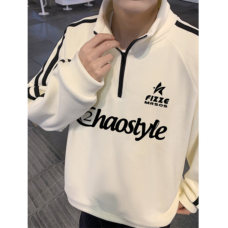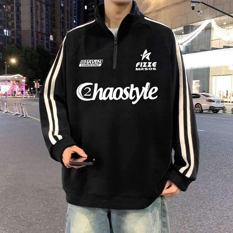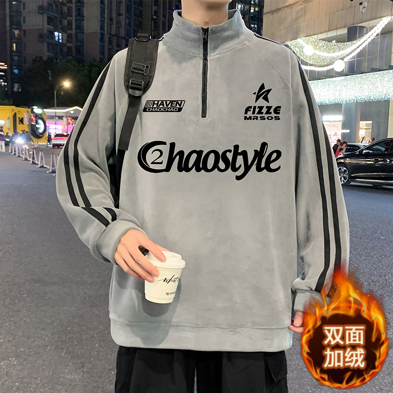 双面加绒重磅抓绒衣男春秋季新款半高领卫衣保暖打底衫美式外套潮