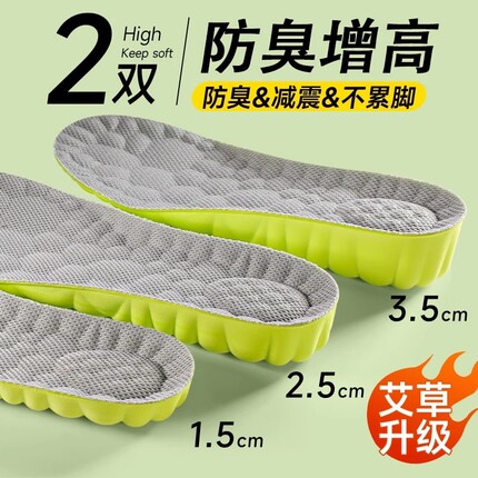 增高鞋垫男士不累脚隐形内增高女透气运动艾草不塌陷舒适高弹吸汗