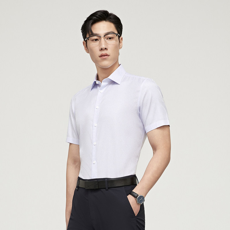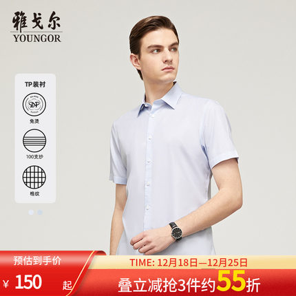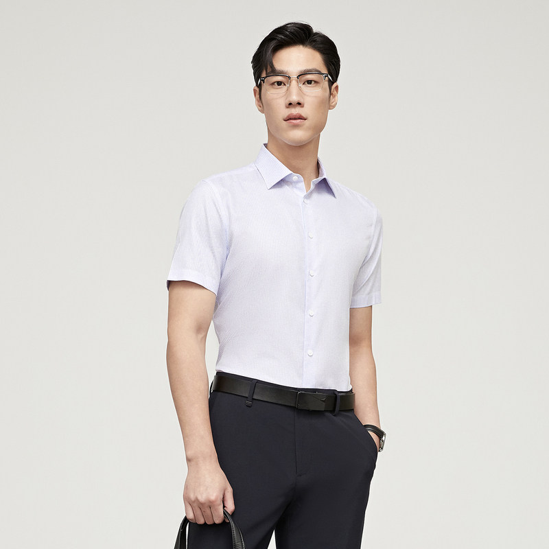 【100支格纹DP免烫】雅戈尔夏新款商务休闲装衬通勤短袖衬衫男