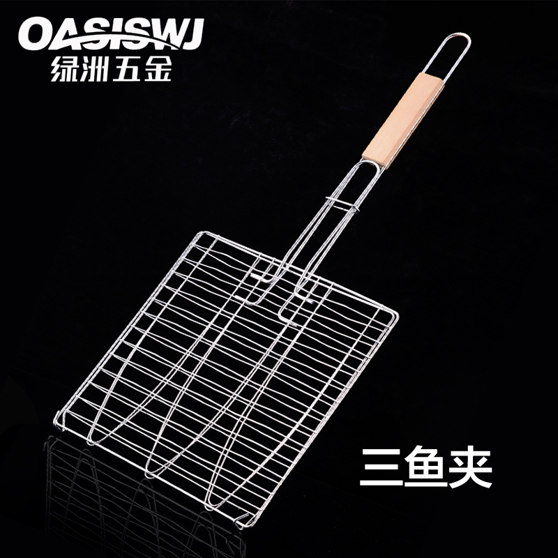 速发烤鱼夹子形烧烤网烧烤鱼夹方夹不锈钢用具工具长网烤夹板大号