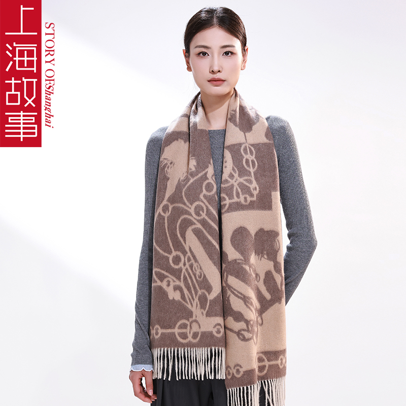 上海故事100%羊毛围巾女冬季加厚保暖羊绒围脖送妈妈生日礼物礼盒