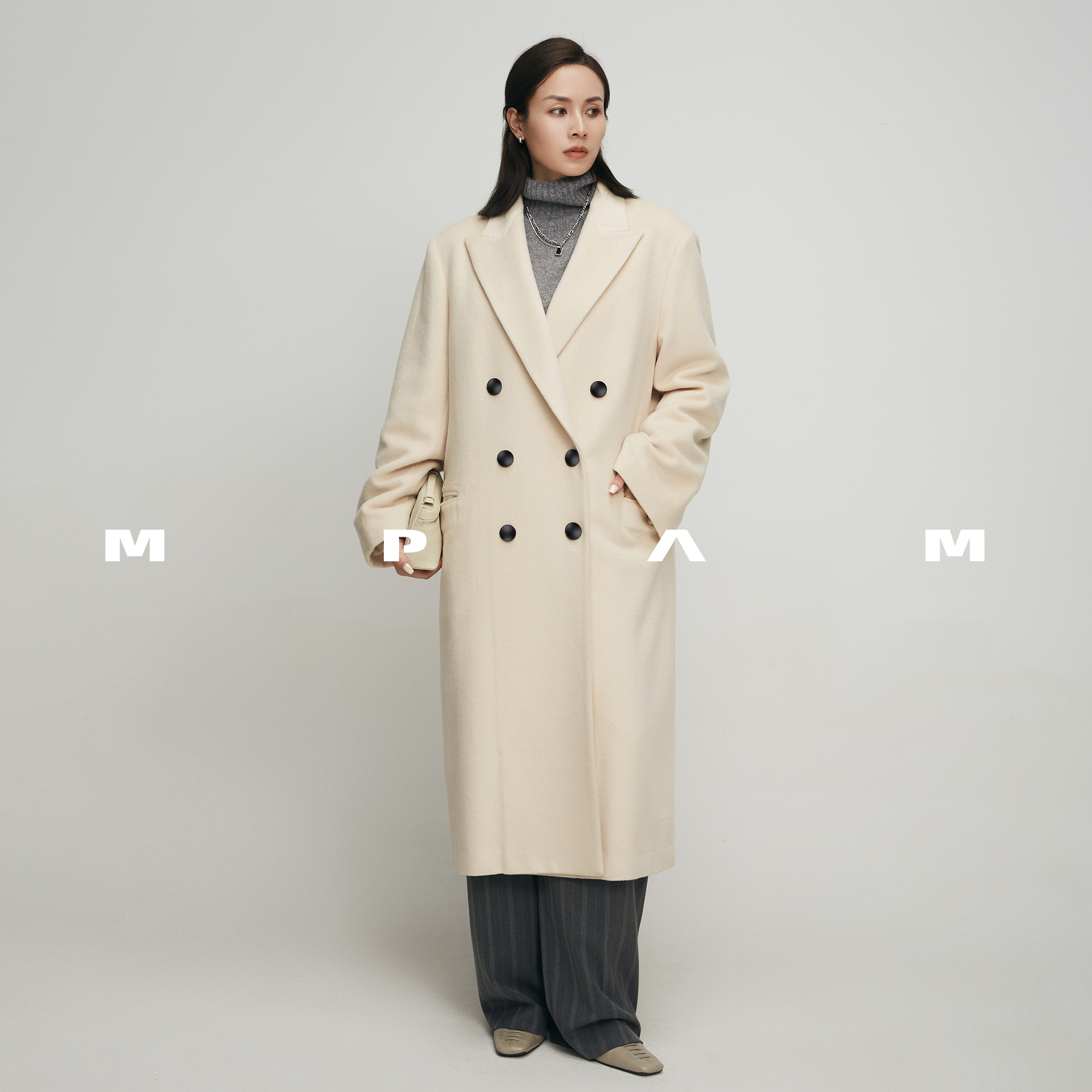 MPAM秋冬季中长款羊毛大衣阔版双面呢大衣韩系宽松简约经典外套女