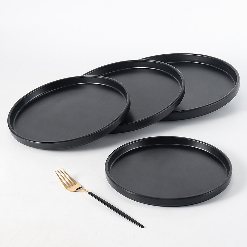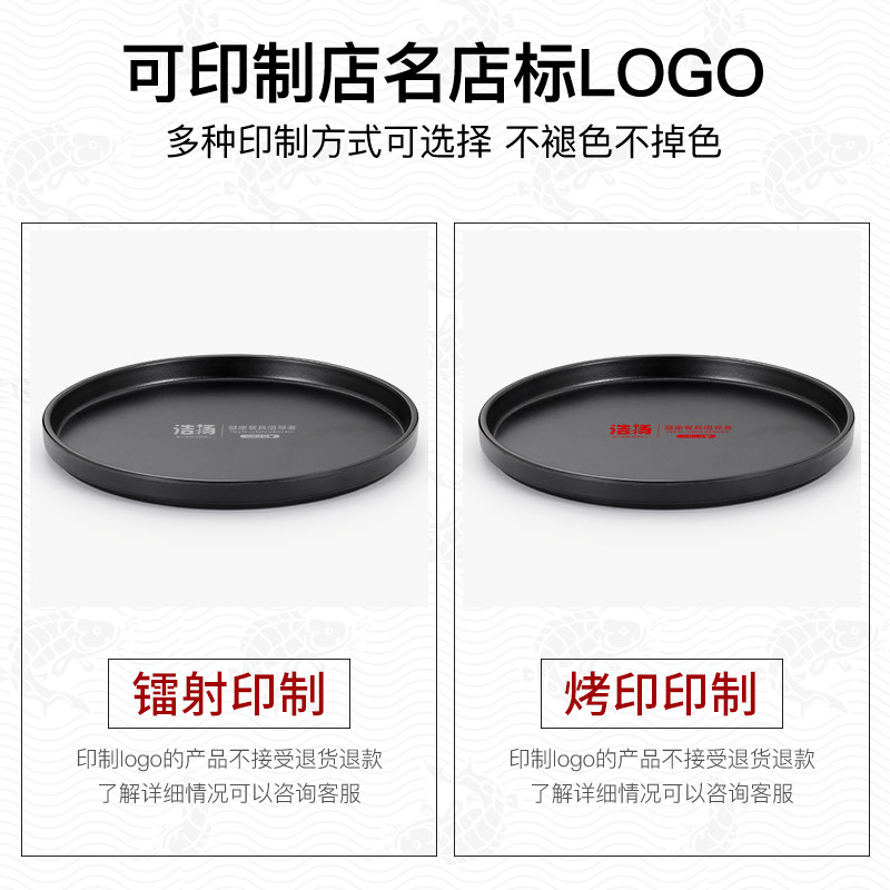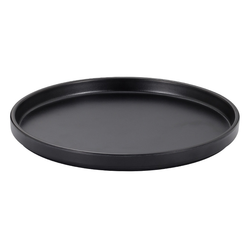日式密胺盘子牛排西餐盘黑色圆形托盘平盘烤肉盘创意摆盘菜盘商用