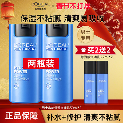 欧莱雅男士水能保湿滋润乳面霜补水润肤擦脸乳液脸部护肤品清爽