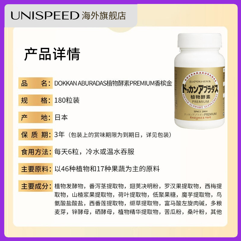 Herb健康本铺植物金酵素Dokkan抖康酵素香槟金加强润肠通便180粒