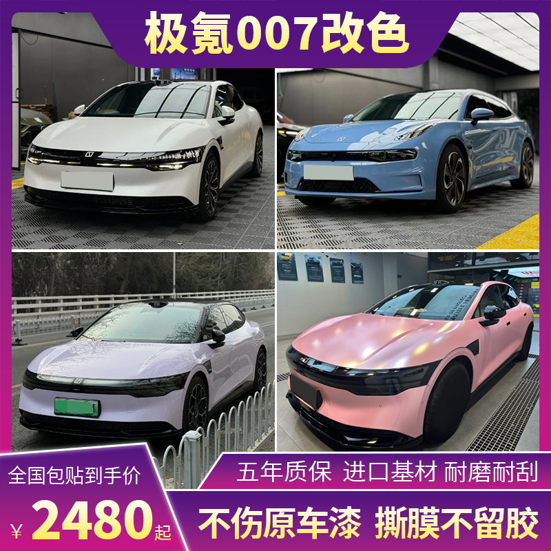 极氪007汽车改色膜液态金属龙血红超哑灰蓝威尼斯紫车身全车贴膜