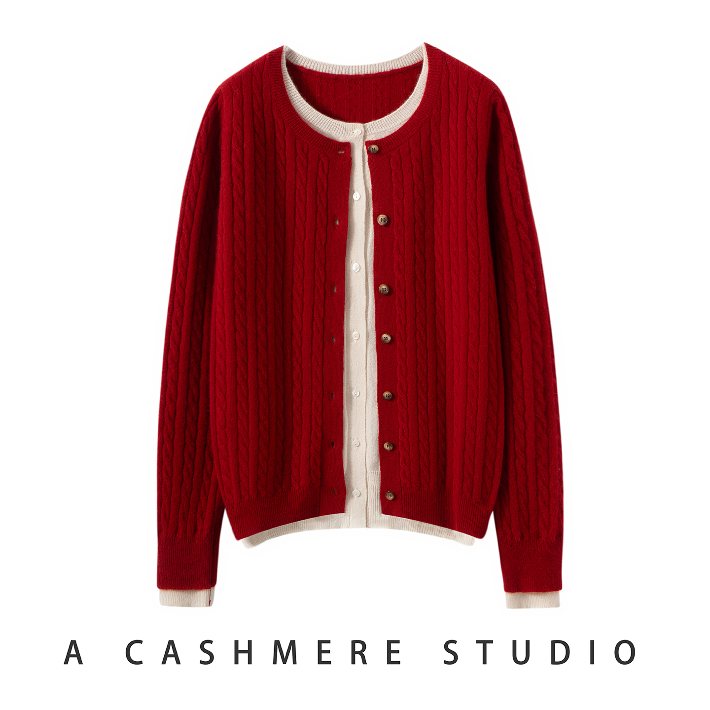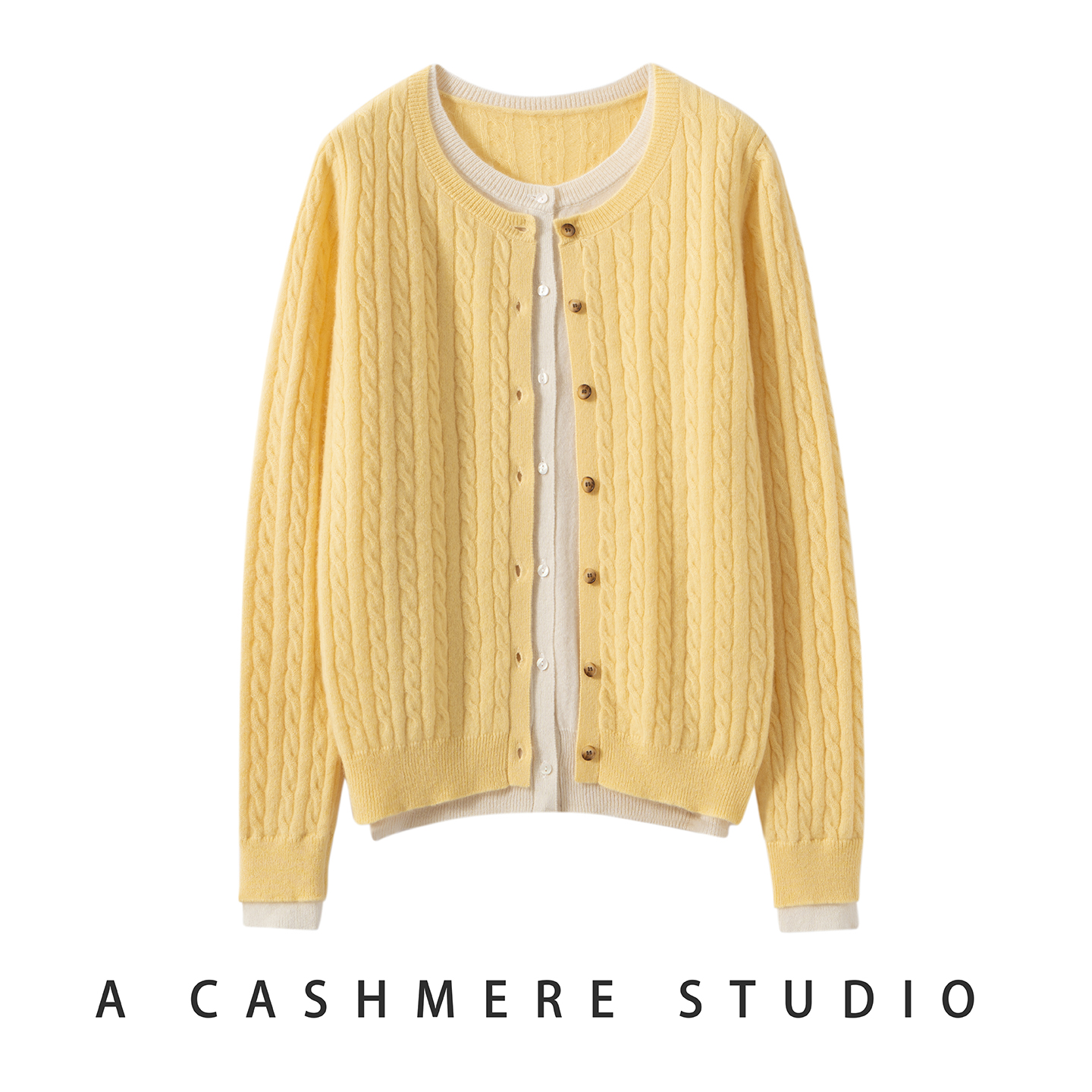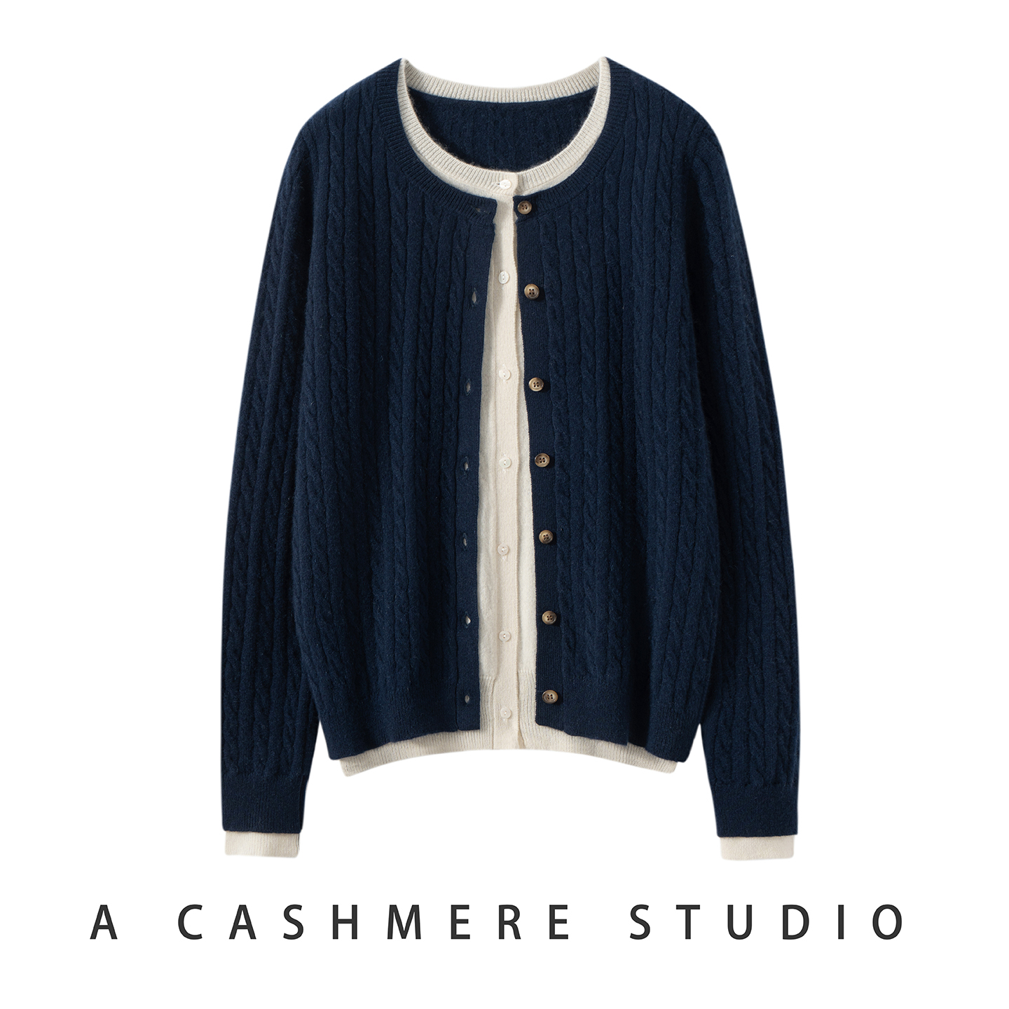 2025秋冬新款女圆领假两件100%山羊绒衫宽松百搭针织衫毛衣打底衫