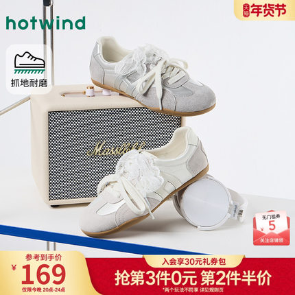 热风平底德训鞋女鞋2026年春季新款时尚薄底鞋运动户外休闲慢跑鞋