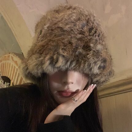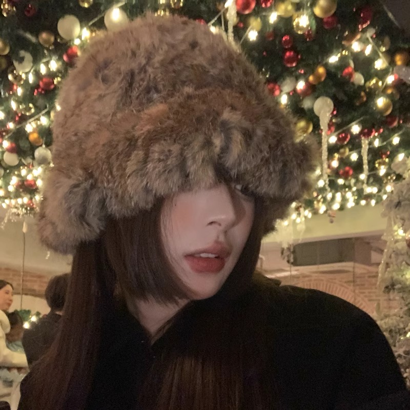 Classy key新加坡设计师联名款兔毛帽子女秋冬保暖防寒护耳毛线帽
