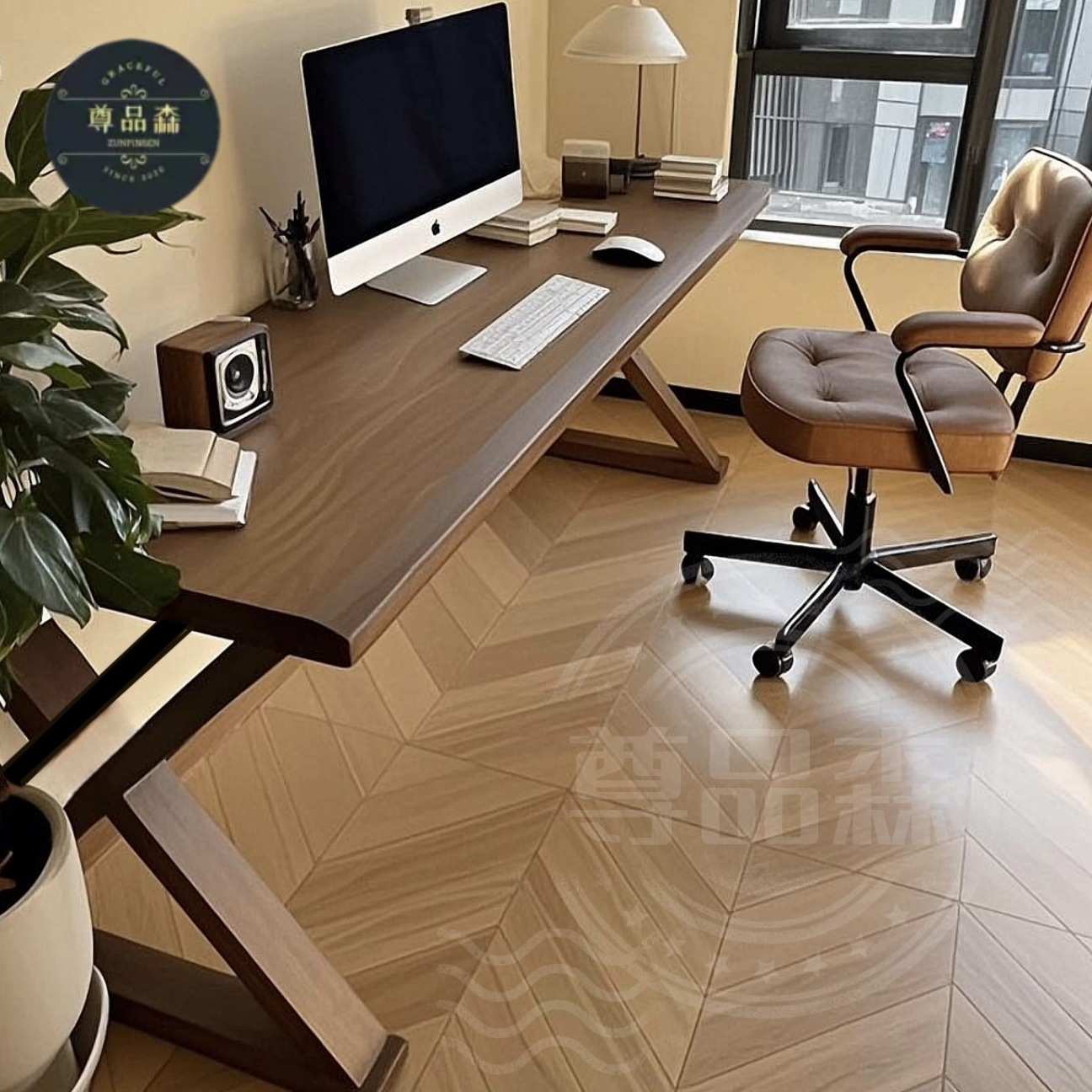 实木长条书桌中古原木风家用靠墙双人学习桌工作台台式办公电脑桌