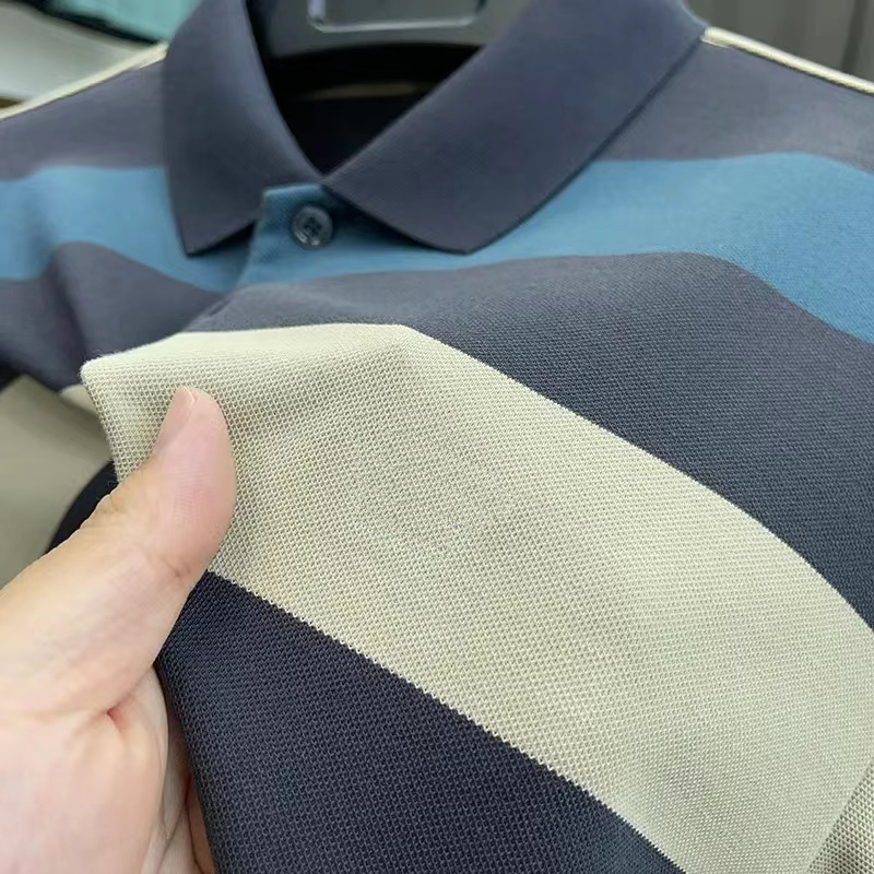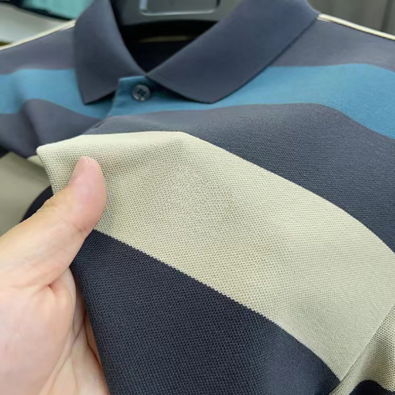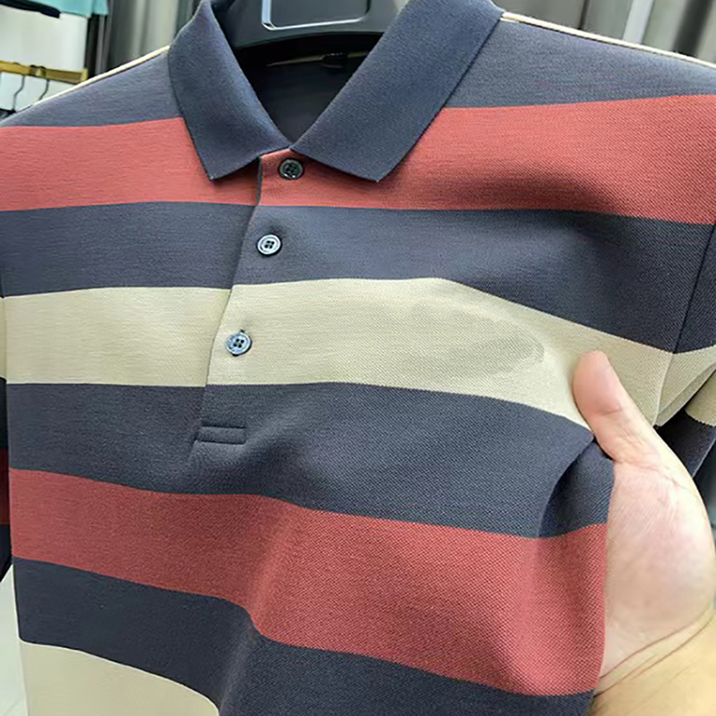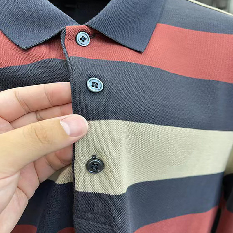夏季新款纯棉翻领polo衫男士短袖T恤高档休闲商务条纹体恤衫半袖