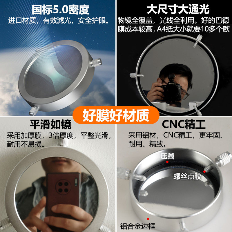 巴德膜天文望远镜看太阳日珥日食专业滤镜膜接单筒观鸟镜相机单反