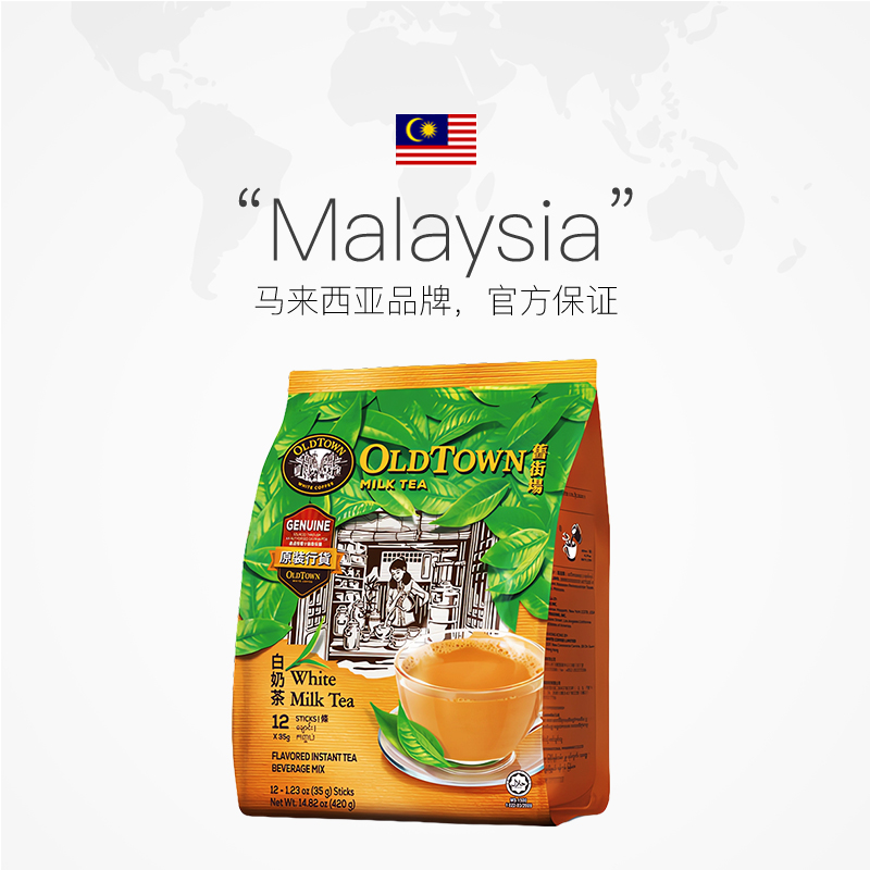 马来西亚进口旧街场白奶茶粉冲饮品袋装速溶奶茶包12条官方旗舰正