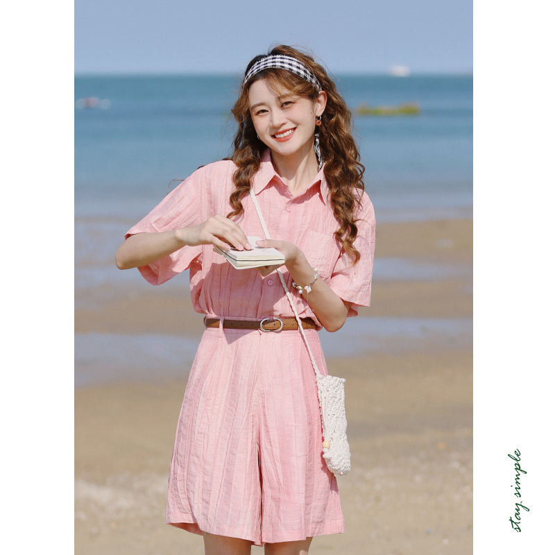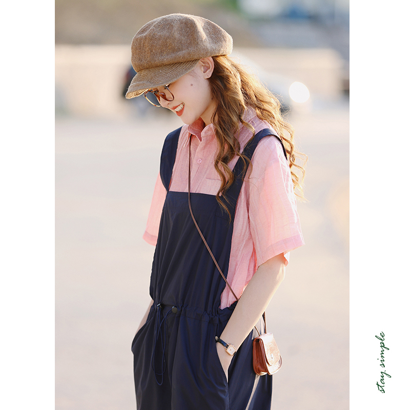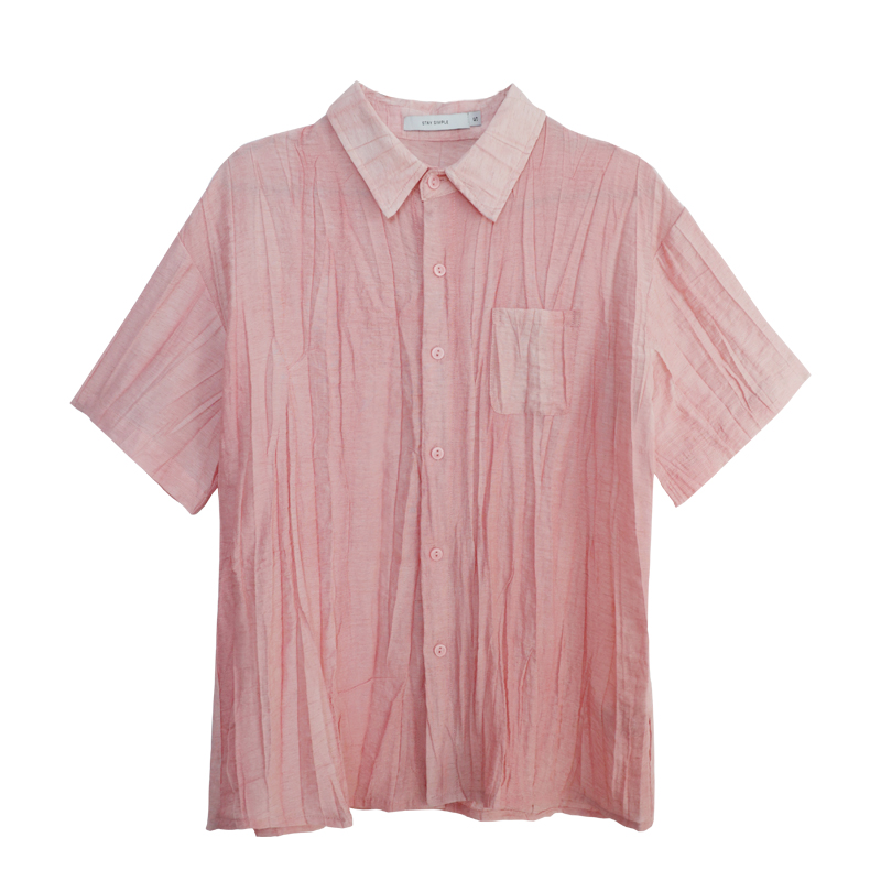 花吉B779琉璃粉色艺术感不规则扎染麻棉褶皱衬衫女2025新款夏衬衣