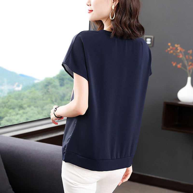 夏季薄款冰丝短袖T恤女装大码宽松中年妈妈夏装新款洋气雪纺上衣
