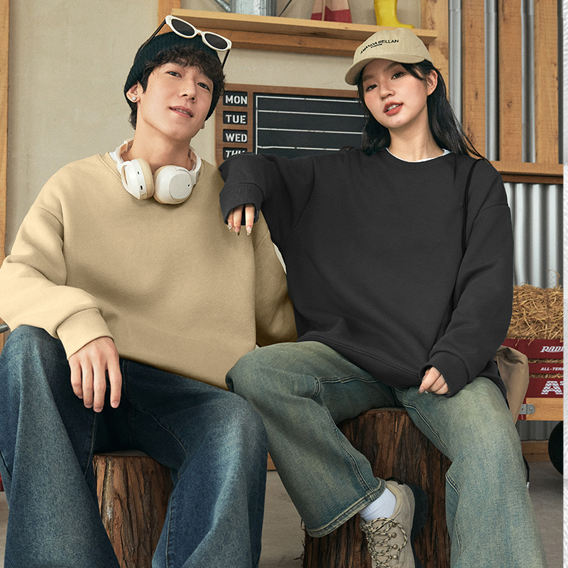 雪中飞酒红色卫衣男女同款春秋2025新款宽松休闲情侣装套头外套PC