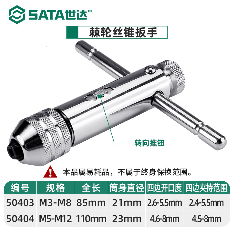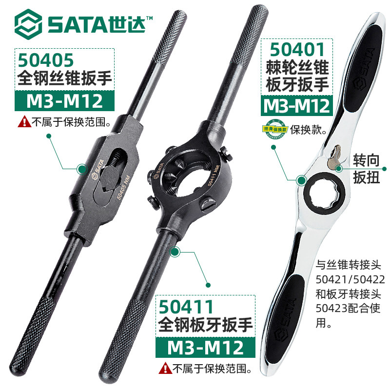 SATA世达丝锥扳手套装t型丝锥夹头全钢棘轮手动丝攻板牙套丝器