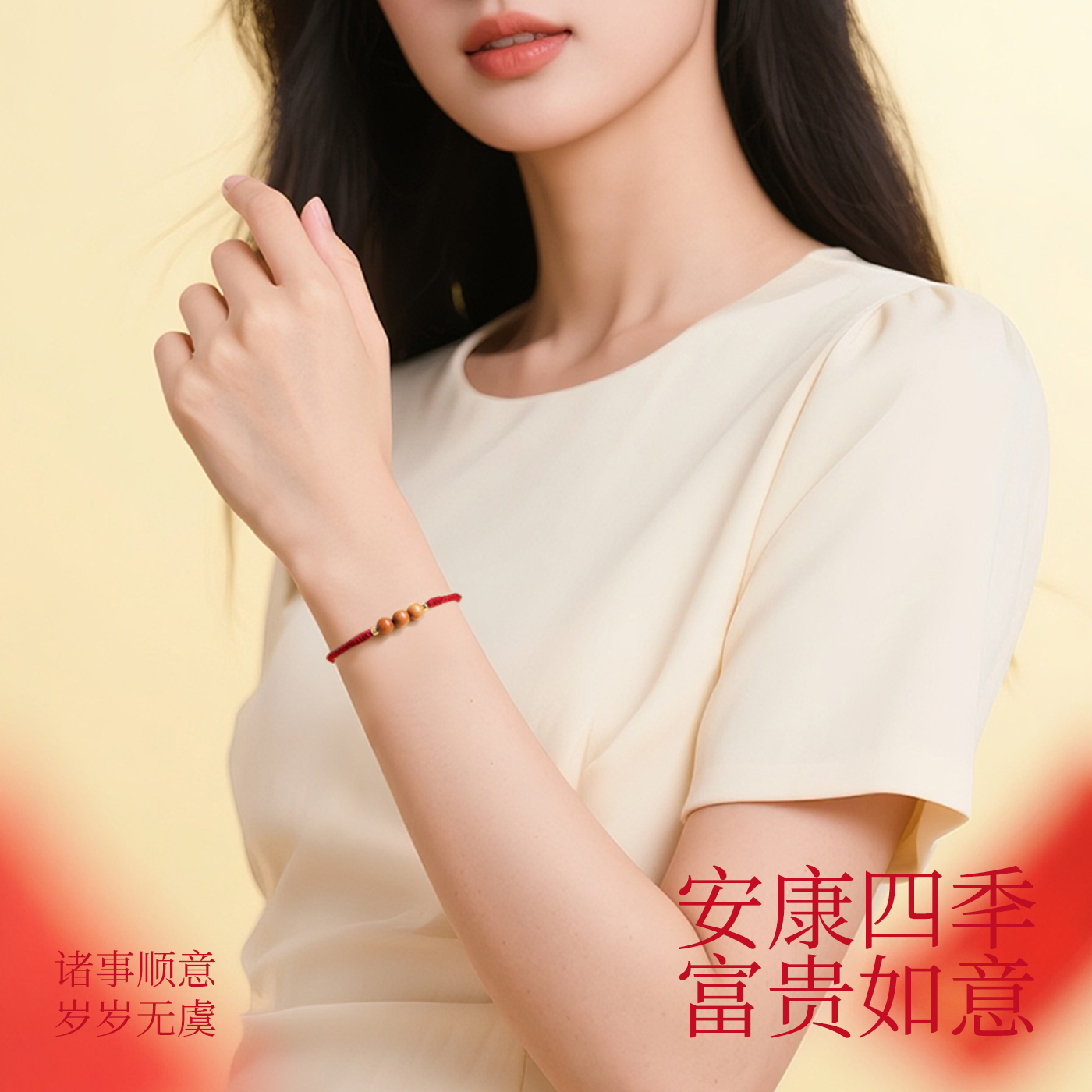本命年红绳手链桃木手串女好运红手绳转运珠木质饰品护身符编织绳